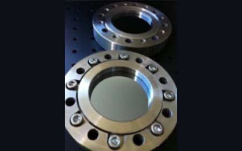 CF flanges provide all metal sealing for vacuum chamber systems. CF (ConFlat) flanges use an OFHC copper gasket and knife-edge flange, whicxh is a bolted flange. The knife edge of the flange presses into the softer copper gasket to make a high vacuum seal. CF is perfect for high vacuum, ultra-high vacuum (UHV) and where high temperature in needed.